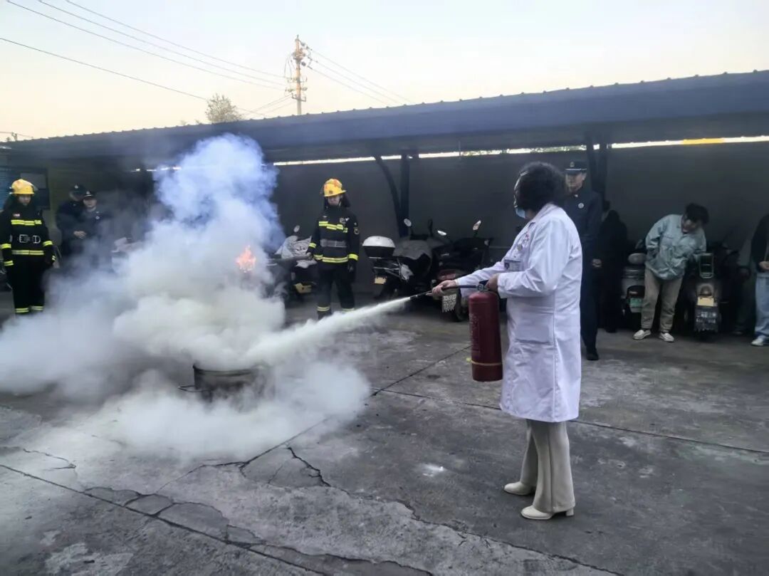 理论结束后,培训老师现场演示了灭火器、消防栓的正确使用方法,并总结了“提、拔、握、压”四字口诀,帮助职工们快速掌握操作要领。随后,医院模拟突发火情,警报响起后,各科室迅速响应,协作配合,医护人员迅速用湿毛巾捂住口鼻,沿安全通道有序撤离至空旷地带;后勤人员携带灭火器、消防栓进行初期火情压制,整个过程紧张有序。